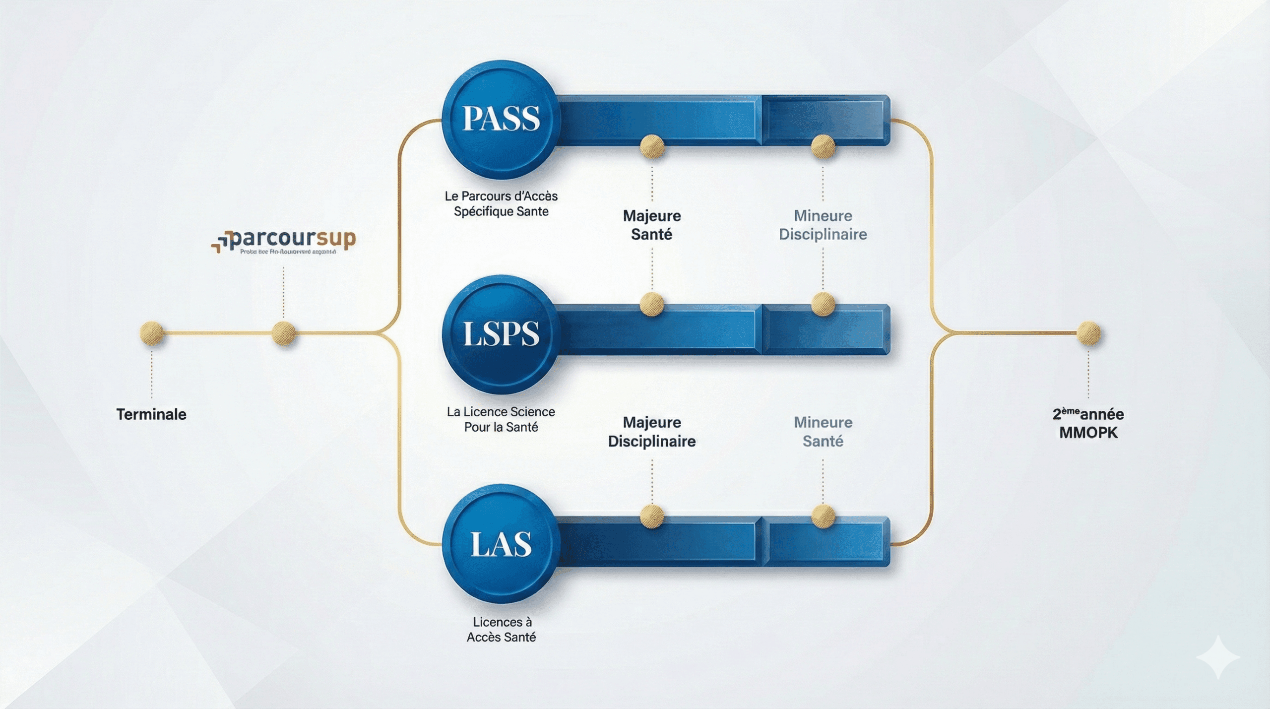 Ce n’est pas une faute de frappe. MMOPK, c’est juste un acronyme pour désigner les cinq grandes filières médicales :